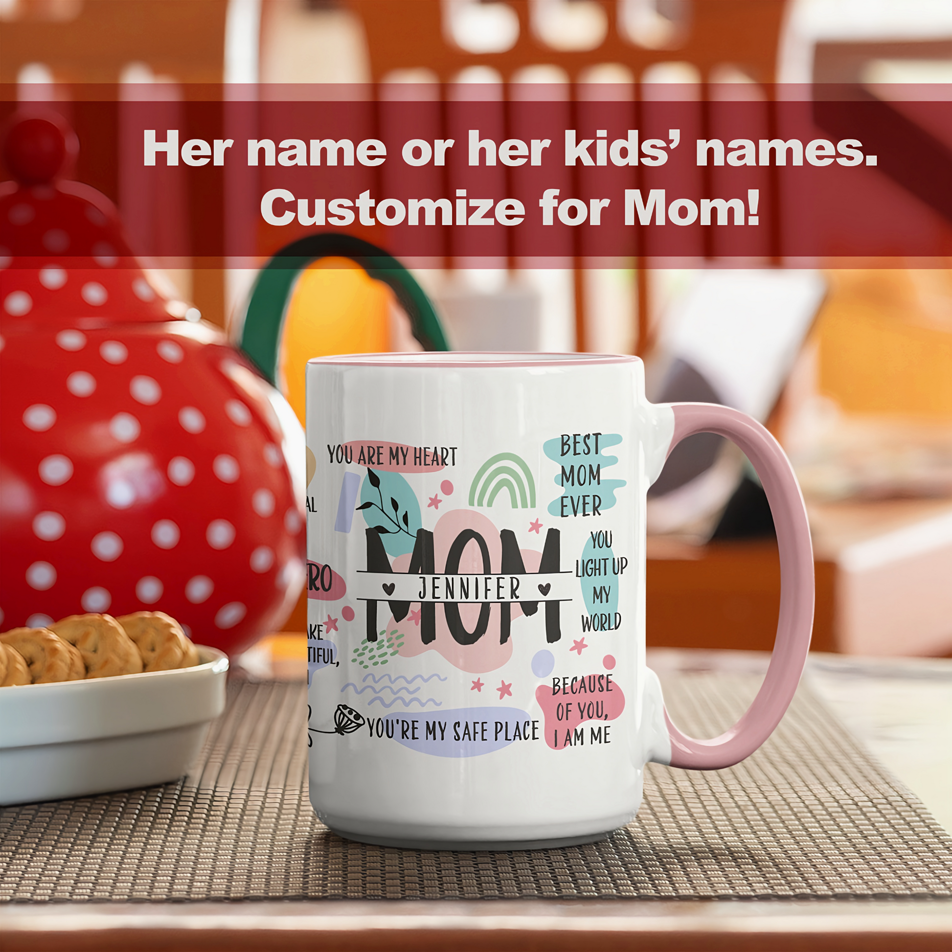 Surprise your mom with a beautifully personalized coffee mug designed to make her smile every day! This custom mug allows you to add Mom’s name, her children’s names, or a heartfelt message, making it the perfect gift for Mother’s Day, birthdays, or any special occasion. Crafted from high-quality ceramic, this mug is dishwasher and microwave safe, ensuring convenience and long-lasting durability. With its vibrant design printed on both sides, it’s ideal for morning coffee, afternoon tea, or simply as a keepsake to treasure forever.