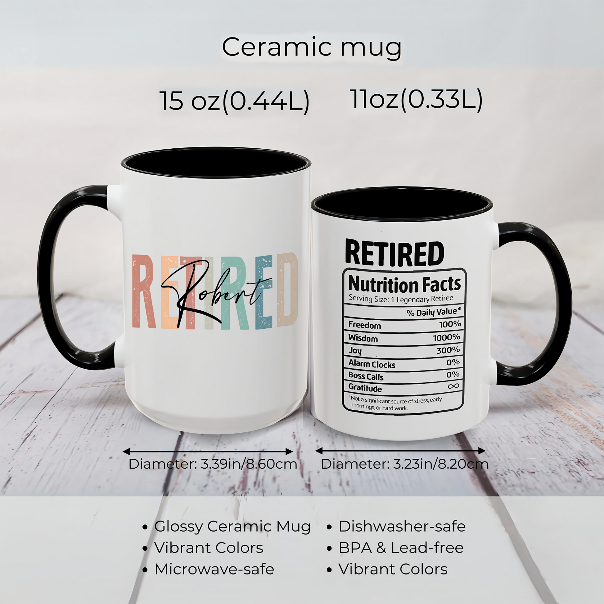 Give a thoughtful and funny gift to someone who deserves it most — a customized retirement mug featuring a playful and heartwarming “Retired Nutrition Facts” label. Perfect for coworkers, bosses, friends, or loved ones moving on to a well-earned chapter of rest and relaxation.